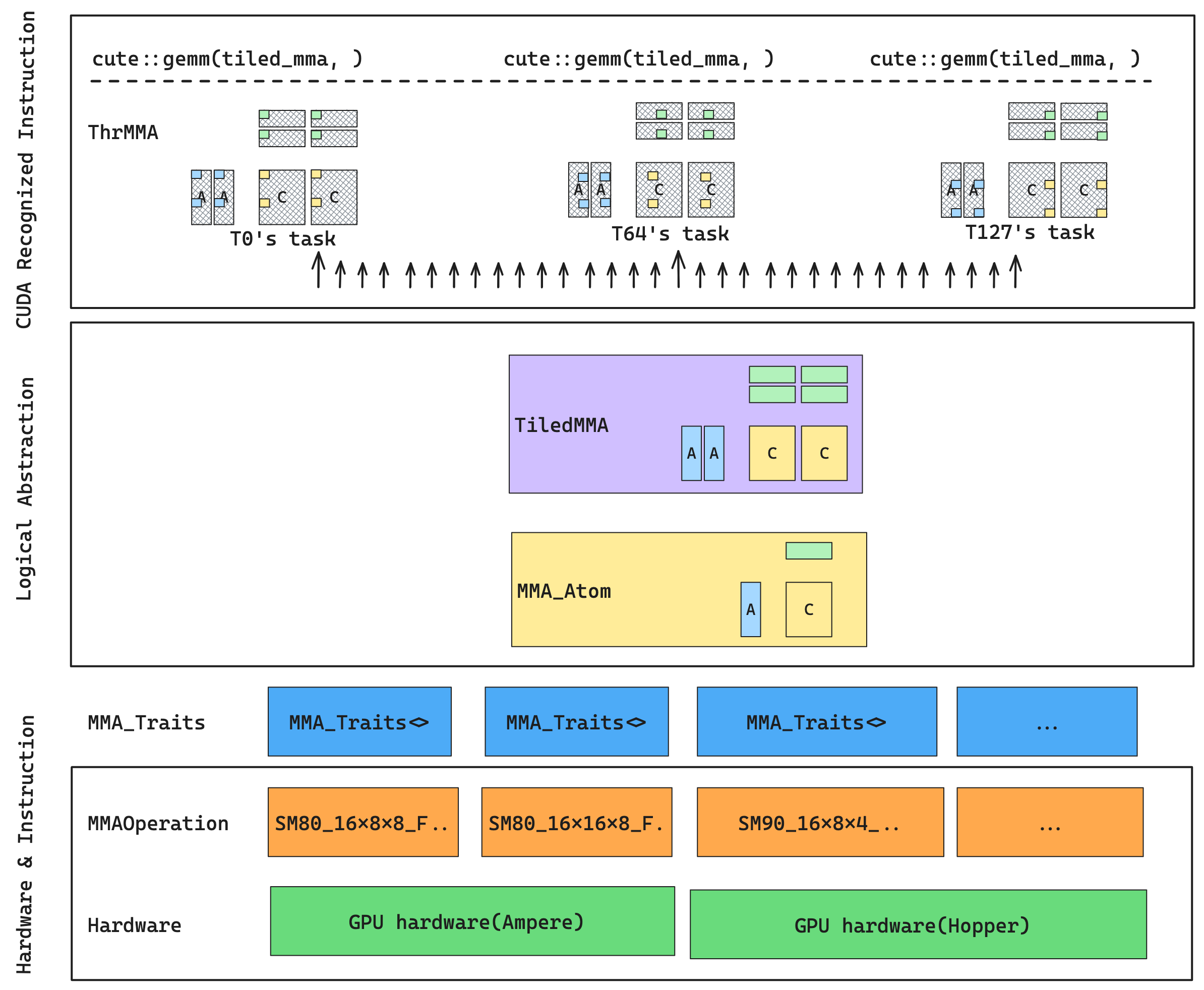 tensor = pointer + layout。而 layout 是唯一的算法源,所有的坐标变换、步长计算、内存重排(Swizzling)都在 Layout 映射到 1D Index 的过程中完成